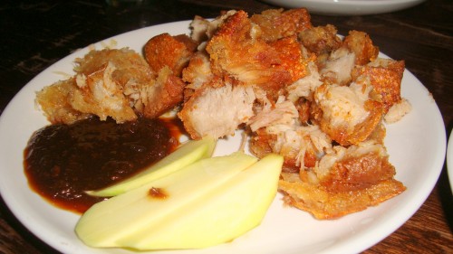Incidentally what is the recent rage about pork belly in Manhattan? It’s as if they’ve never heard of it before while Asians have long indulged in pork fat and raised their cholesterol levels to partake of this treasure. Anyway, 8065 Bagnet in Makati is a tribute to bagnet, offering creations made with fried pork belly, including curry, dinuguan (pig blood stew), sisig (sizzling), gata (coconut milk stew), kare-kare (peanut stew), and binagoongan (shrimp paste).