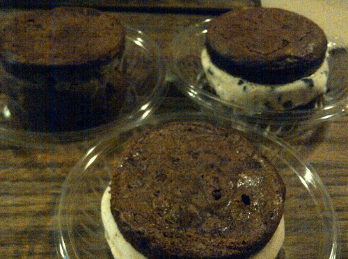 The brownie sides of this peanut butter gelato and brownie ice cream sandwich were chewy and did not crumble to the bite. Did I mention it’s about as big as my hand? I recommend it be shared, either cut in half with a knife or shared bite-by-bite with a person whose cooties don’t scare you.