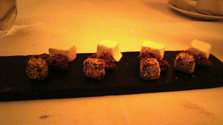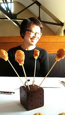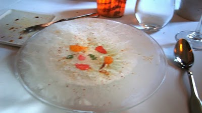 Blue Hill at Stone Barns (Tarrytown, New York) is one of those six-hour meal experiences beginning with a tour of the farm, a sighting of their free-range and grass-fed animals and organic produce, and a glorious meal of several courses. At $100-150/head (without drinks), it is a glorious and thoughtful meal to be shared with friends and family who would appreciate the chef’s effort, as well as the objective of the farm and restaurant. Don’t be fooled by the small servings as most people would do well with the five-course (as opposed to the eight-course) selection, though hearty manly eaters must be warned. There are never overwhelming quantities of food, but there is definitely a sensation overload. (Apologies for the poor lighting, this was the in the evening and flash photography was not permitted. (Update: DJ’s take on Blue Hill’s Farmer’s Lunch is here.)