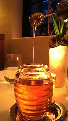 Farm bees produced this picturesque honey in a jar to begin the dessert course.