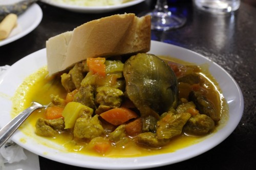 “Look at her,” my sister said, “she’s making friends already!” Right then a group of big women started laughing with her, suggesting a bunch of plates they thought we should have. At their prodding we ordered the alcachofa (artichoke stew with pork) and we dipped our bread in the delicious slow-cooked sauce. We ordered some more wine, more beer, more food.