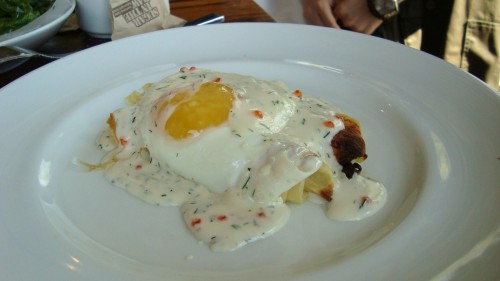 But fine. You can’t fault the food because of the service. The Slinger was the crowd favorite, with the perfectly runny egg over chili. I loved the shishito peppers because everyone got a hot one except for me. The French toast was large and in charge, the burger was huge though not very tasty. The smoked trout crepe was so tiny and swimming in cream that it was offensive. 🙁 Perhaps it was a fluke, but there were two tiny pieces of fish in each crepe. I think they should have called it smoked trout FLAVORED crepe instead.