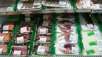The seafood section is impressive with octopus, squid and cuttlefish.