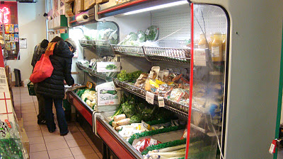 The vegetable section is limited but sufficient, with staples like daikon, choy sum, and watercress.