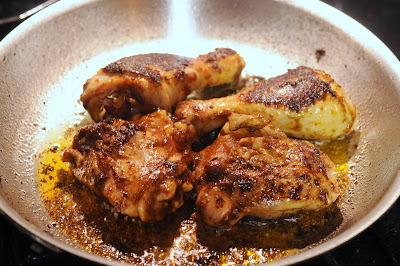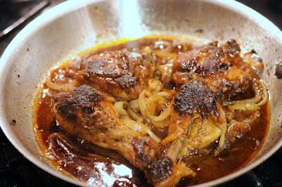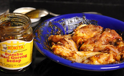 I began by smothering four chicken pieces in two tablespoons of nasi goreng paste.