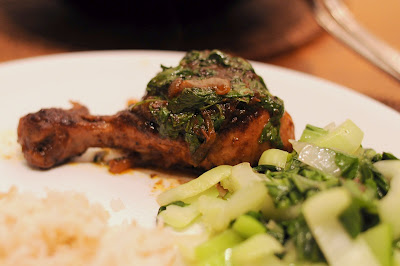 Chicken with Nasi Goreng Paste, Sauteed bokchoy on the side.