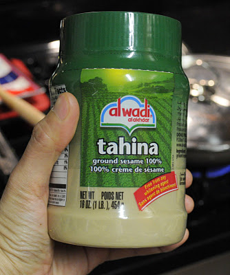 Stir the tahini well. In most cases the solids will be stuck to the bottom of the jar.