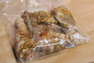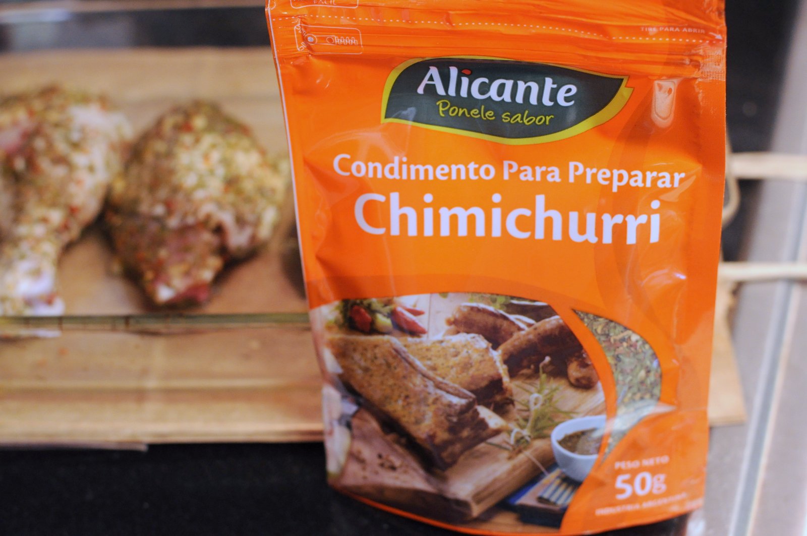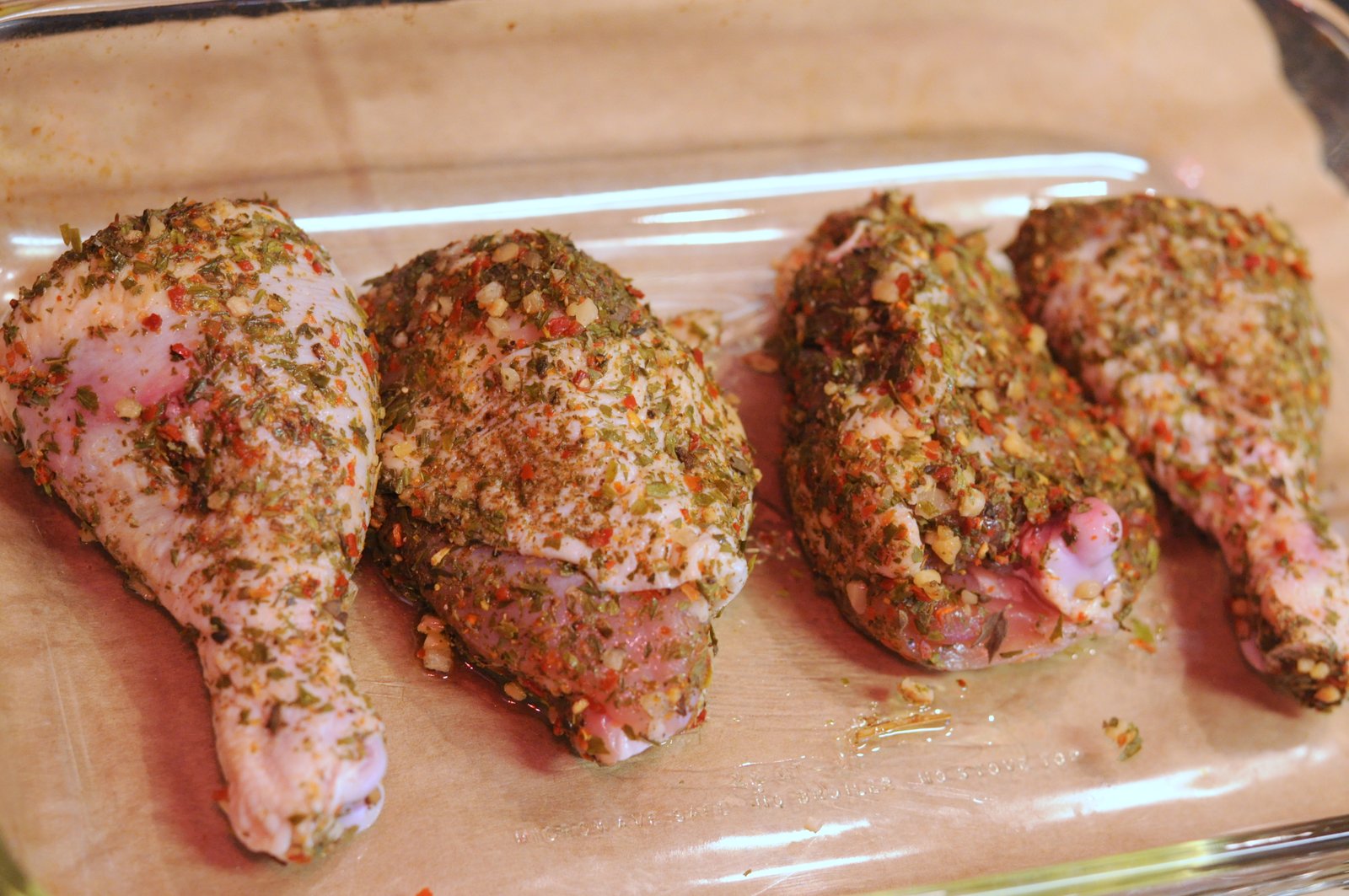 Salt the chicken pieces generously and rub the chimichurri seasoning until entire surface of meat is covered. Store in sealed plastic pouch and marinate in fridge for 1-2 days. Bake in a greased glass baking dish at 400C for 50 minutes. Remove when skin is brown and crispy. Serve atop grains and with a side salad.