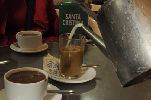 Panting and sweating underneath our jackets, we sat and ordered our plate. The chocolate was heavenly and the cafe con leche was warm and rich. They brought out espresso in a glass along with a kettle of hot milk which they poured into the glass before your eyes. We were all smiles during our churros adventure, both happy to be there and sad that it would be our last Malaga adventure. I’ve always loved Spain