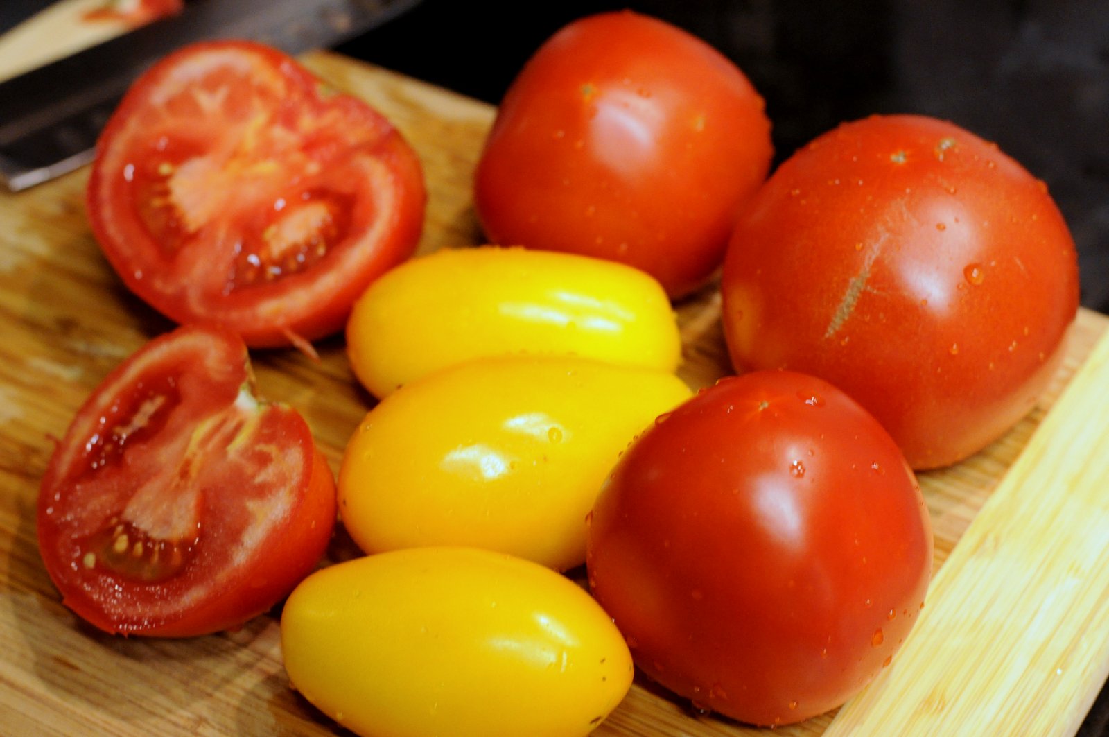 We began with a bunch of ripe tomatoes, chopped coarsely.