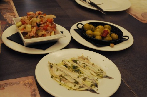 Our choices: pulpo salad, anchovies, olives.