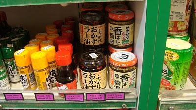 Bukkake okazu rayu is Japanese chili garlic oil, a tasty mix of chilis and very crispy fried garlic. Oddly enough, the regular variety doesn’t have any heat at all despite its fiery red presentation. It’s similar in appearance to the Chinese version (in that category, I favor Lee Kum Kee’s chili oil) but is very tasty even in small amounts that it’s best eaten with bland food such as rice, steamed vegetables, and plain wontons.