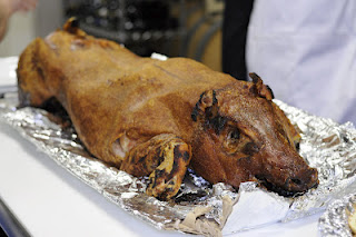 After the class a whole roasted pig was served, and he cut it so expertly that I began to doubt the expertise of the  butchers I watched in my homeland.