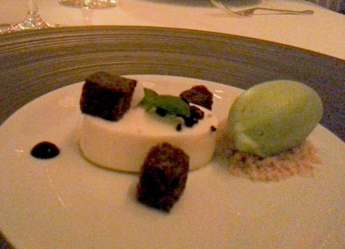After the rich main courses our tongues definitely had to be stripped off the savory flavors and the first dessert had enough citrus and herbs to do just that. Basil cake? That was only topped by the basil ice cream of the main dessert, teasing you with an Asian combination of coconut and some chocolate thrown in there just for fun.