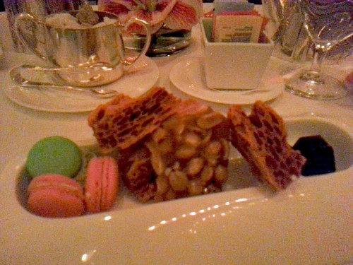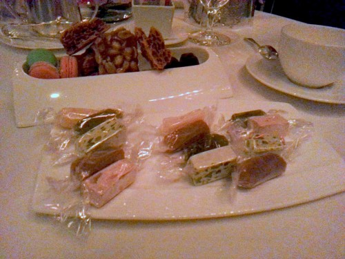 And in case you wanted to linger after dessert and have some coffee or tea, a roaming candy cart stocked with jellies, cookies, brittles, macarons and candy made its way to our table pushed by a gentleman who was surprised we chose so many of his offerings.