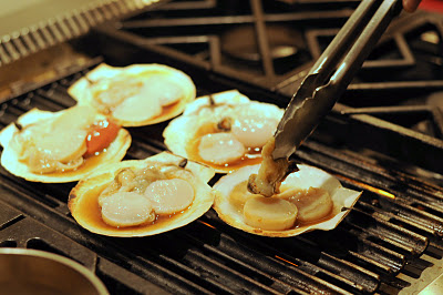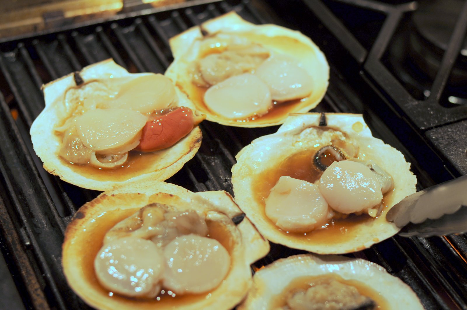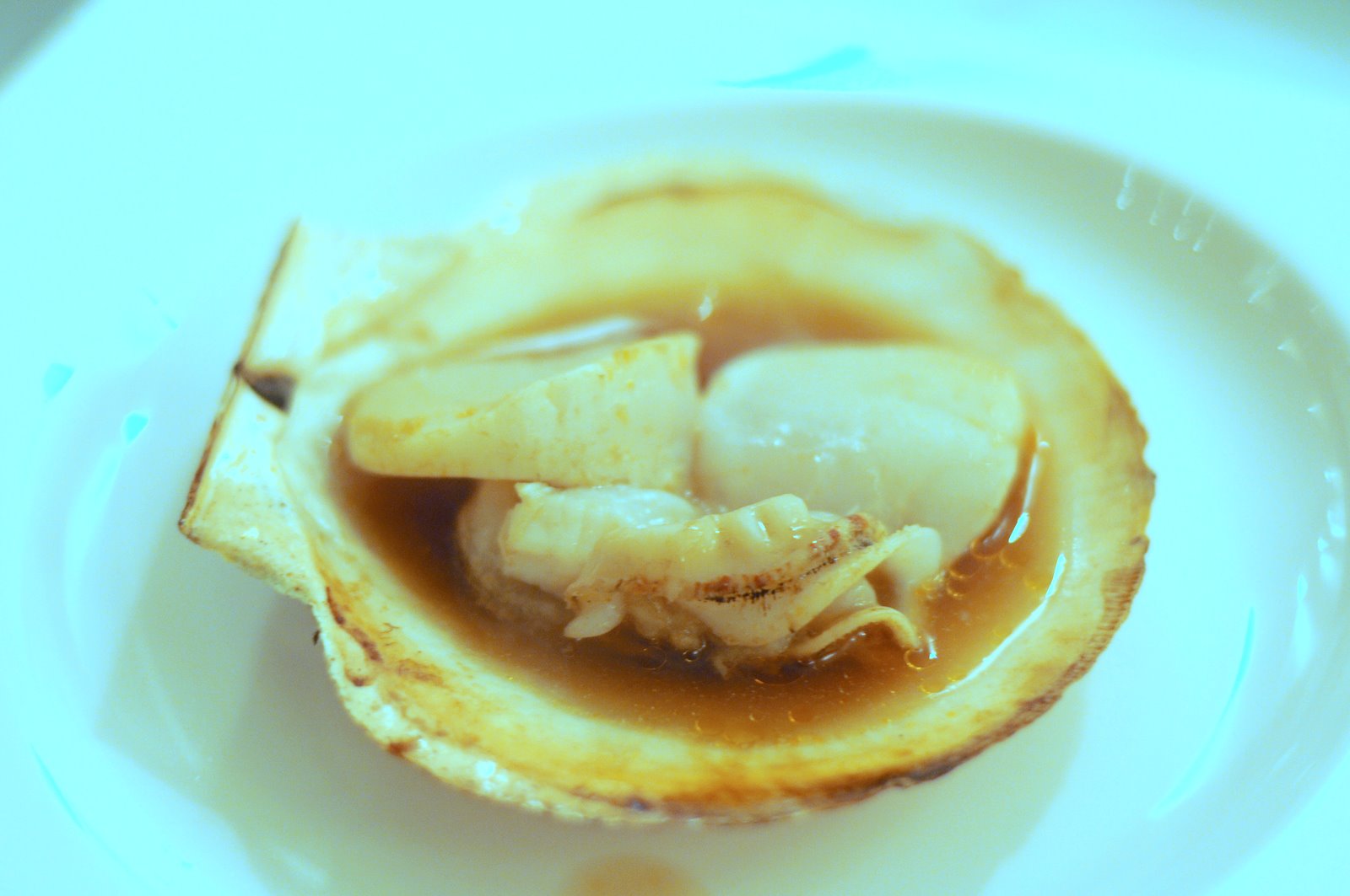 Grilled Scallops in Dashi, Yuzu, Sesame