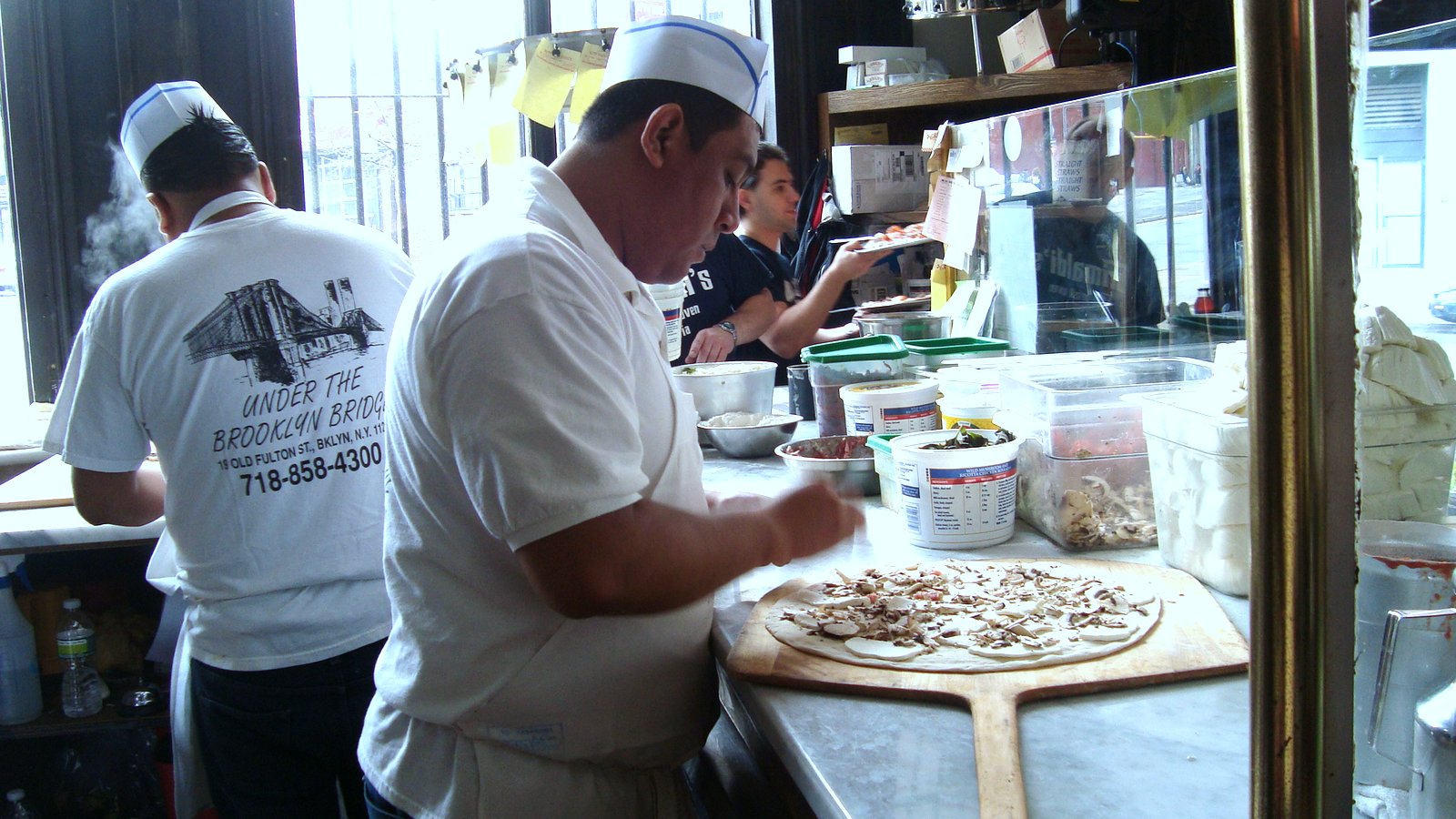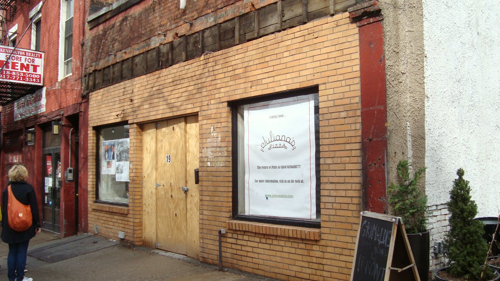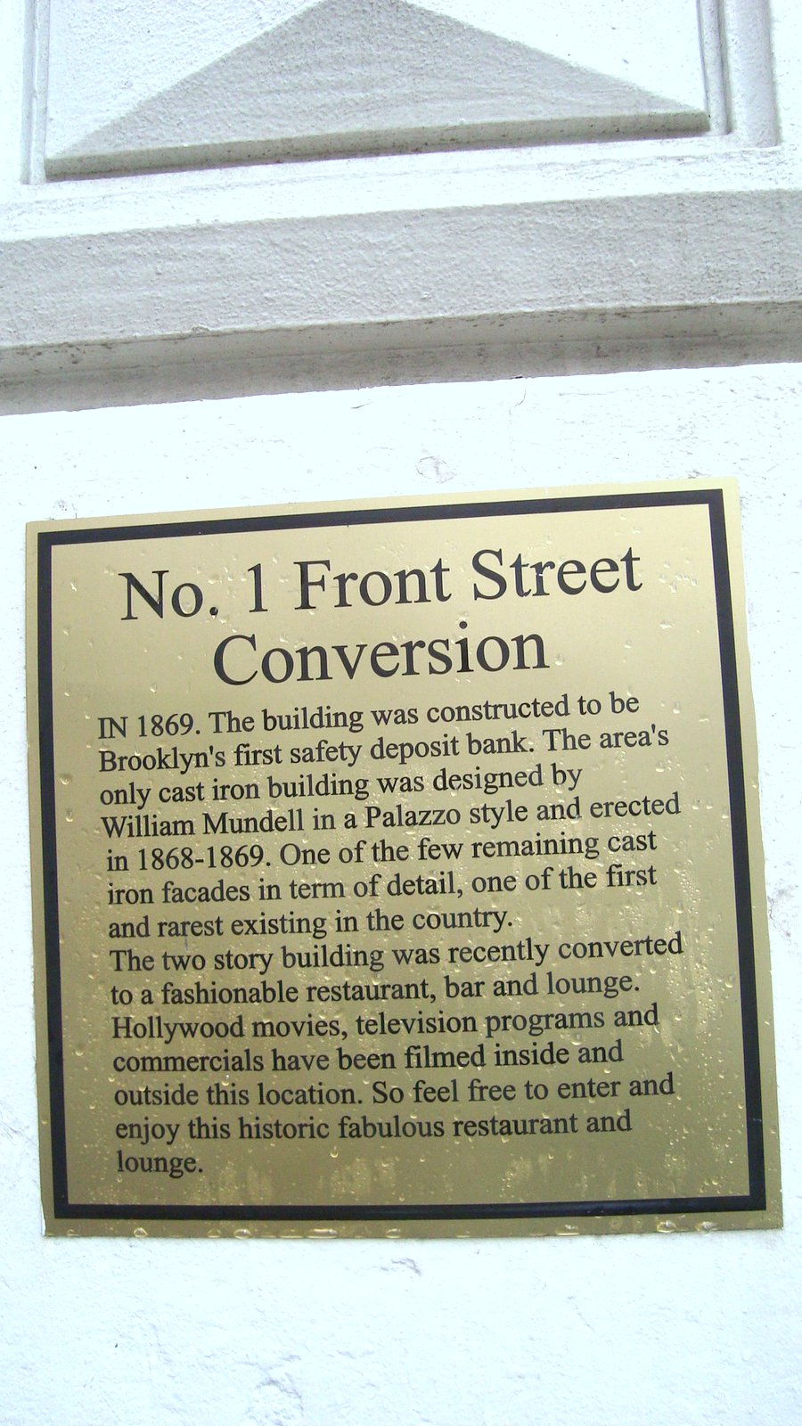 The Grimaldi’s Pizza restaurant that has been at 19 Old Fulton Street for decades moved around the corner to 1 Front Street, an old bank building that has the only cast iron facade in the area. Of course it took this move for me to look into its reasons. Grimaldi’s owner Frank Cioli (who purchased the restaurant’s rights from Patsy Grimaldi in 1988) lost his lease at the old location, including the use of the legendary coal brick oven that produced Grimaldi’s magical pies. Apparently Patsy Grimaldi is coming out of retirement to take the old restaurant back and naming it Juliana after his late mother. I love Italians. There’s always a family story!