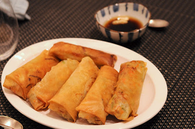 Lumpia served with a mix of spiced vinegar, soy sauce, and crushed garlic.