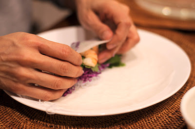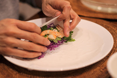 Ever since we were served homemade summer rolls by our fellow food-crazy friends, we’ve been hooked on making them at home. I wrote down my recipe in a previous post but never documented how to put everything together. So here goes.