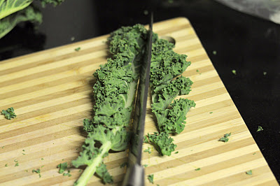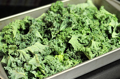 Cut up leaves into bite size pieces and toss in a baking pan.