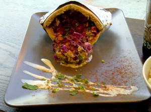We had the spicy falafel which was tender, well-seasoned and deceivingly spicy; and the eggplant a la Yafa which was so flavorful that I had gobbled it up with their awesome hot sauce before I could be stopped.