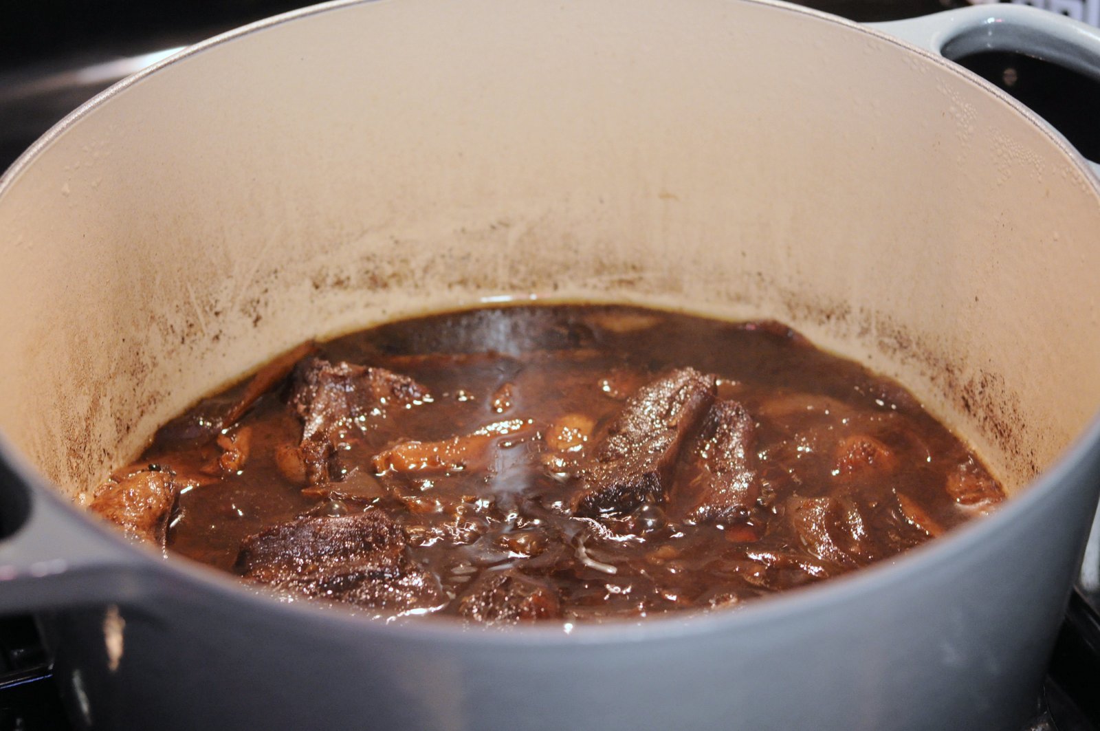 The dish itself celebrates the first day of Spring by recalling a favorite barbecue recipe (Sweet and Sticky Chicken Wings) and turning it into a stew, all to christen a newly-bought Dutch oven (our first!). (Recipe below)