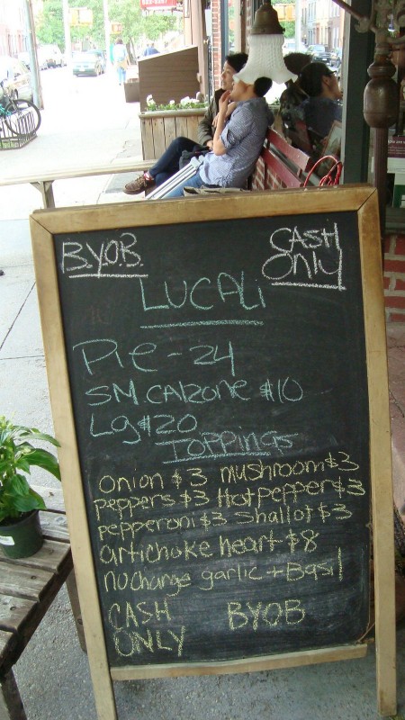 A big plus at this place is that it’s BYOB, which usually means they haven’t gotten their liquor license. Bring your own bottle(s) of wine and the server will gladly pour it into your glasses, sometimes allowing you to drink while waiting in line outside (at your own risk, of course). This cuts your pizza bill significantly as opposed to ordering wine in-house, as is in their sister restaurant Giuseppina’s in South Slope, another joint worth mentioning.