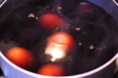 * I omitted the anise and cinnamon because I was unsure as to what I was going to do with the eggs. That was probably a good idea since R decided to make them them an egg salad sandwich for our breakfast the next day. Yum 🙂