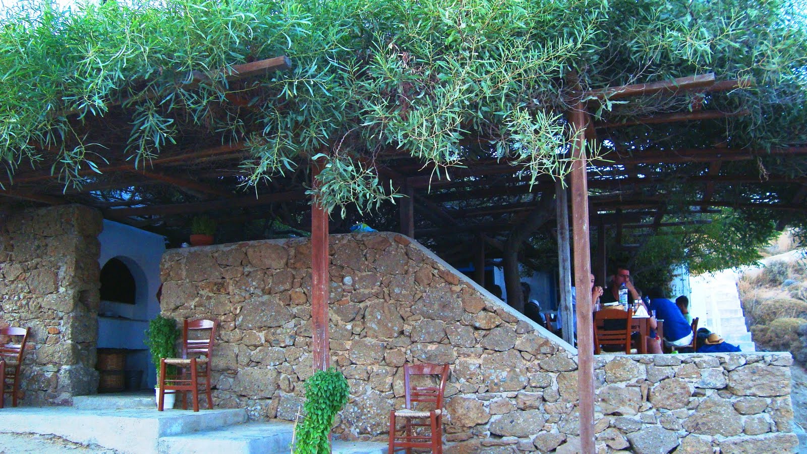 On that afternoon we were sitting on wooden chairs lined up outside the taverna along with several other parties who seemed to know the deal there at Kiki’s, so we just followed suit. Our Greek friend had recommended the taverna and we had started to drink the wine from the copper pitcher when she struck up a conversation with a single mother holding a place in line for her son, a friend and her daughter. We raised a glass to each other and shared squash seeds we had saved from our ferry ride to the island.