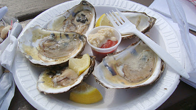 Because I am a lover of the ocean, its creatures and its fruits, I try to keep track of food events that celebrate things I like. One of these gatherings is the Oyster Festival in Long Island, where large quantities of raw oysters are shucked and served to its thousands of attendees each year. The festival has grown a lot since I first attended it five years ago and now includes a fair with rides, and other street fair treats like funnel cakes and watered down lemonade. It was a breezy day I spent with some fun friends. Here are some festival staples.