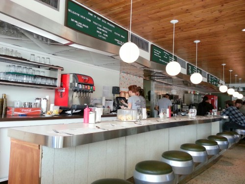 I was pleasantly surprised that a new energy had taken over the diner, turning it into a hip new joint boasting local meat and produce, promoting nearby artisanal companies, and giving away cool magazines on green, responsible living. A granola-infused wind quickly warmed my heart š