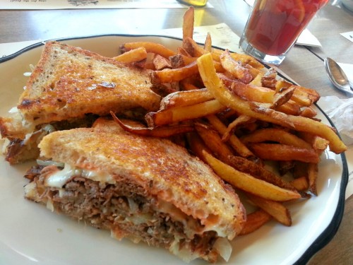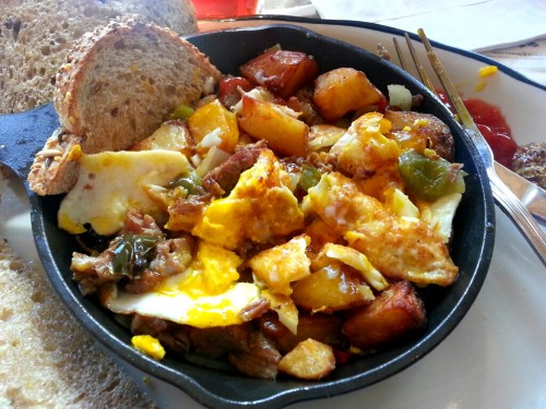 My order of corned beef hash reminded me of a skillet order I had at Woodland, which was welcome because the whole place reeked of Brooklyn brunch goodness. I was pleased to see that my corned beef hash and my wife’s reuben were both not nitrite-pink, but were still both tasty and made with love, just the way we liked it. Kudos to the chef for not overdoing the salt on any of the menu items. Much appreciated!