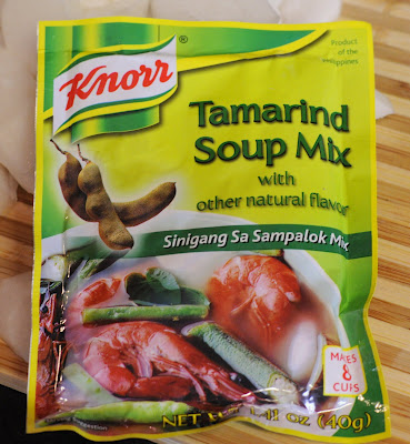 We add water and the sinigang mix (give me a break, there’s no green tamarind around here!).