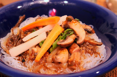 I reused it again. I just can’t get enough of my Sesame Shortrib sauce that I routinely find myself saving it for future dishes. This time there weren’t any meat pieces left so I sauteed some portabella mushrooms in onions and soy sauce to give a meaty consistency and put it on top of vermicelli before drizzling the reheated leftover sauce. The Vietnamese Pickled Daikon and Carrots broke the richness perfectly as well.