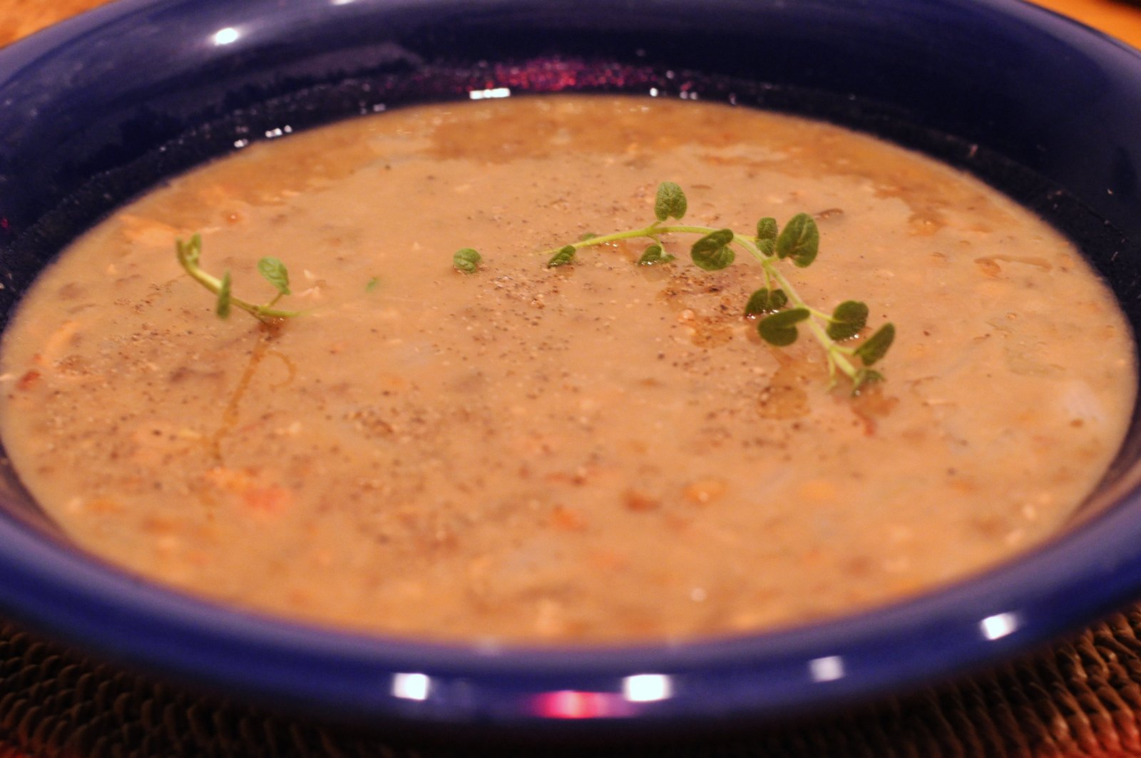I’ve always wanted to make an American style, smoky lentil or pea soup, the kind one orders on a cold day for a hearty and meat-flavored meal in a bowl.