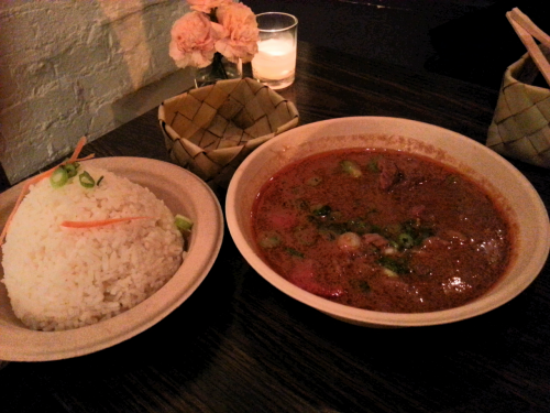 The beef panang, a standard on their menu, tastes like it’s been stewing all day. The spices have seeped into the tender pieces of meat and the sauce is going to make you order more of their sticky rice to take full advantage of it.