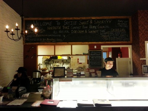 Sky Ice is one of those small overlooked places that hide treasures for the mouth. You want to wish them all the success but at the same time you want to keep it a secret before it becomes so popular that you have to wait in line for an hour for your favorite treats. We hope that they’ll be around for a while and achieve moderate success so they’ll maintain the quality of their cooking and keep their excellent Thai chefs on staff.