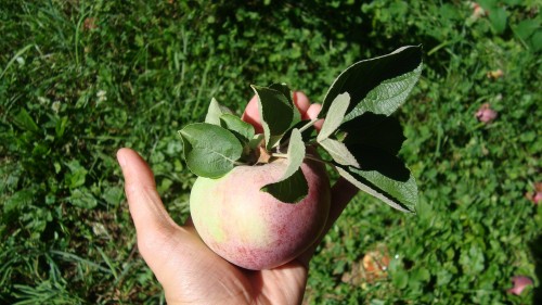 There is definitely something endearing about an apple with its stem and leaves still attached. You never see this in the grocery store, which over-processed apples are the norm.