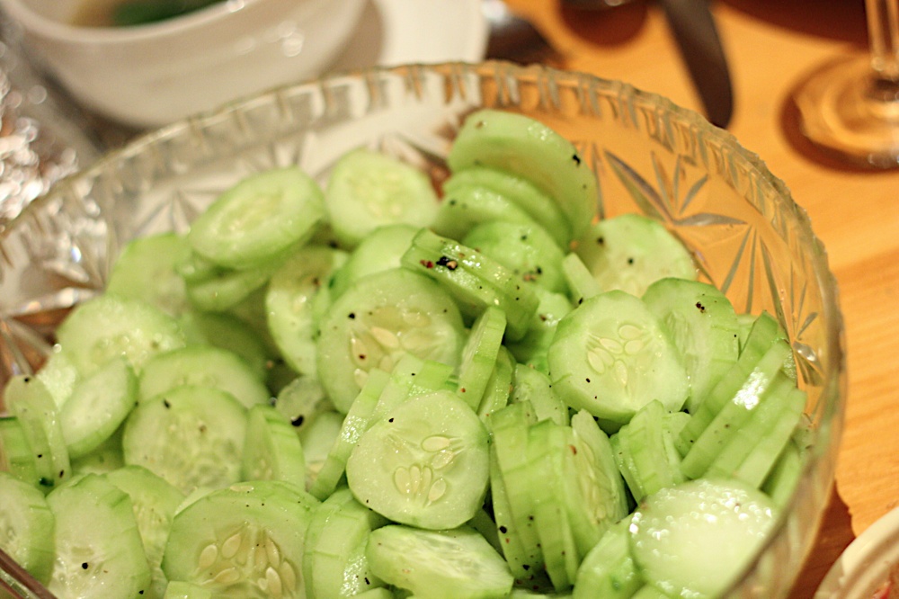 3-4 cucumbers, peeled and sliced into 1/3 inch thick rounds