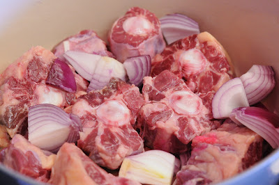 The most tedious part of this dish is softening the meat with water and onions on low heat.