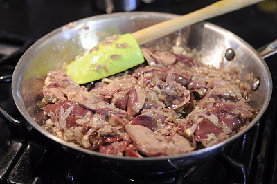 Today we attempted to make a version of Frankie 457’s chicken liver crostini. I have an aversion to liver but tolerate it in paté and foie gras. I fell hard for Frankie’s chicken paté when we ordered their crostini so we decided to try making it with organic, free-range chicken livers from the Food Coop. This is a great creation with a nice hint of sage, brandy and lemon. Perfect over toasted baguette slices as an appetizer.
