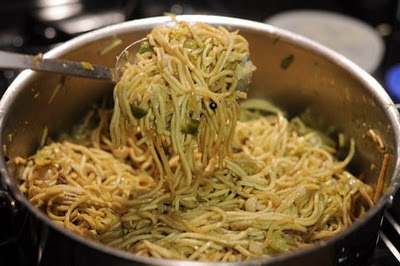“Pancit” is the Filipino term for noodles. Pancit canton is a  stir-fried dish with egg noodles, vegetables, meat and broth. My variation involves the use of leftover adobo sauce in place of the broth. I find that it gives the noodles a rich and layered taste. It’s also a great way to use leftover adobo sauce after all the meat has been devoured and one feels bad throwing the rest of the pot away. I usually keep the sauce in the freezer to make pancit later on. Here’s how I turned a couple of leftovers into a noodle dish that is pretty damn tasty to bust out some chopsticks to!  P.S. If you don’t have adobo sauce, you can replace it with chicken or vegetable broth and supplement it with soy sauce or fish sauce to taste.