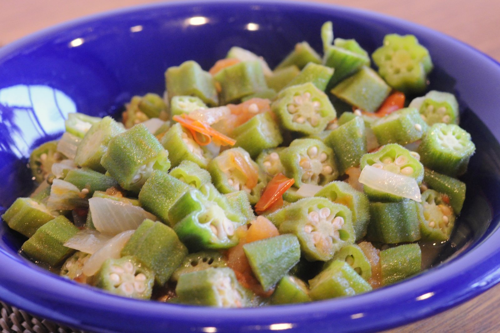Okra is such a versatile vegetable. I love having it in curries and stews, or even just steamed or simply sautéed. This one is a dish I grew up with (and hated, but only because it was green!) but now love. The simple flavors of tomato and fish sauce bring out the sweetness in the okra, making it an ideal partner to strongly flavored dishes.