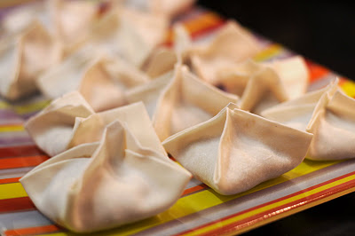 I love the crunch provided by the water chestnuts and the colors of the vegetables inside the wontons.