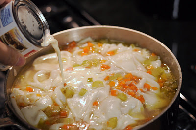 Add evaporated milk and 1 teaspoon sesame oil to the pot before serving, mixing gently.