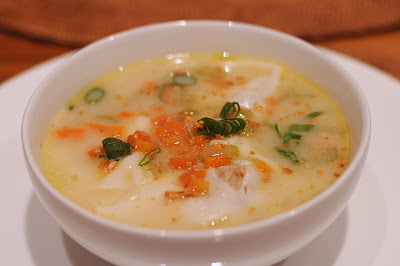 A perfect soup for a perfect evening, topped with chopped scallions and fried garlic.