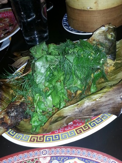 And if this fish didn’t just jump out from an Southeast Asian hut, I don’t know where else it came from. Love this presentation and the shameless retention of the head. This is how you know chefs are brave, when they force the ewwing Americans to deal with fish heads!