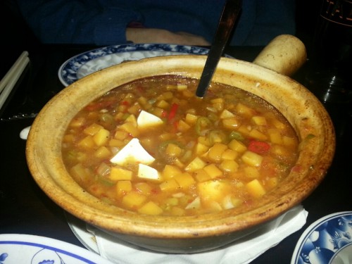 The vegetarian mapo tofu was made with butternut squash, and we enjoyed it a lot because it was a good break from all the heat. Wait, aren’t those more peppers in there? 🙂