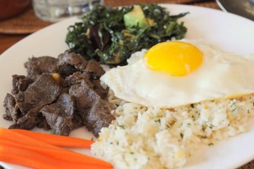 There is something unmistakably Pinoy about the smell of garlic rice, just like the burps it produces throughout the day. Making and consuming tapsilog reminds me of many breakfasts hurriedly consumed in college, eaten with a bowl of spicy vinegar and soy sauce spooned over the rice to conserve the meat as an economic measure. I judged the veracity of my hunger and my ability to make the most of the meat’s flavors by whether or not I ordered extra rice. Now that this meal isn’t so expensive anymore, the challenge is how to stop eating.