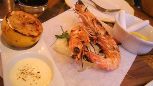 Langostino a la braza – grilled prawn, fennel, garlic yogurt sauce.